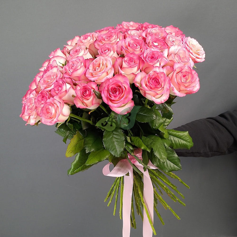 • Роза - 51 штука, цвет - бело-розовый, длина стебля - 60 см;