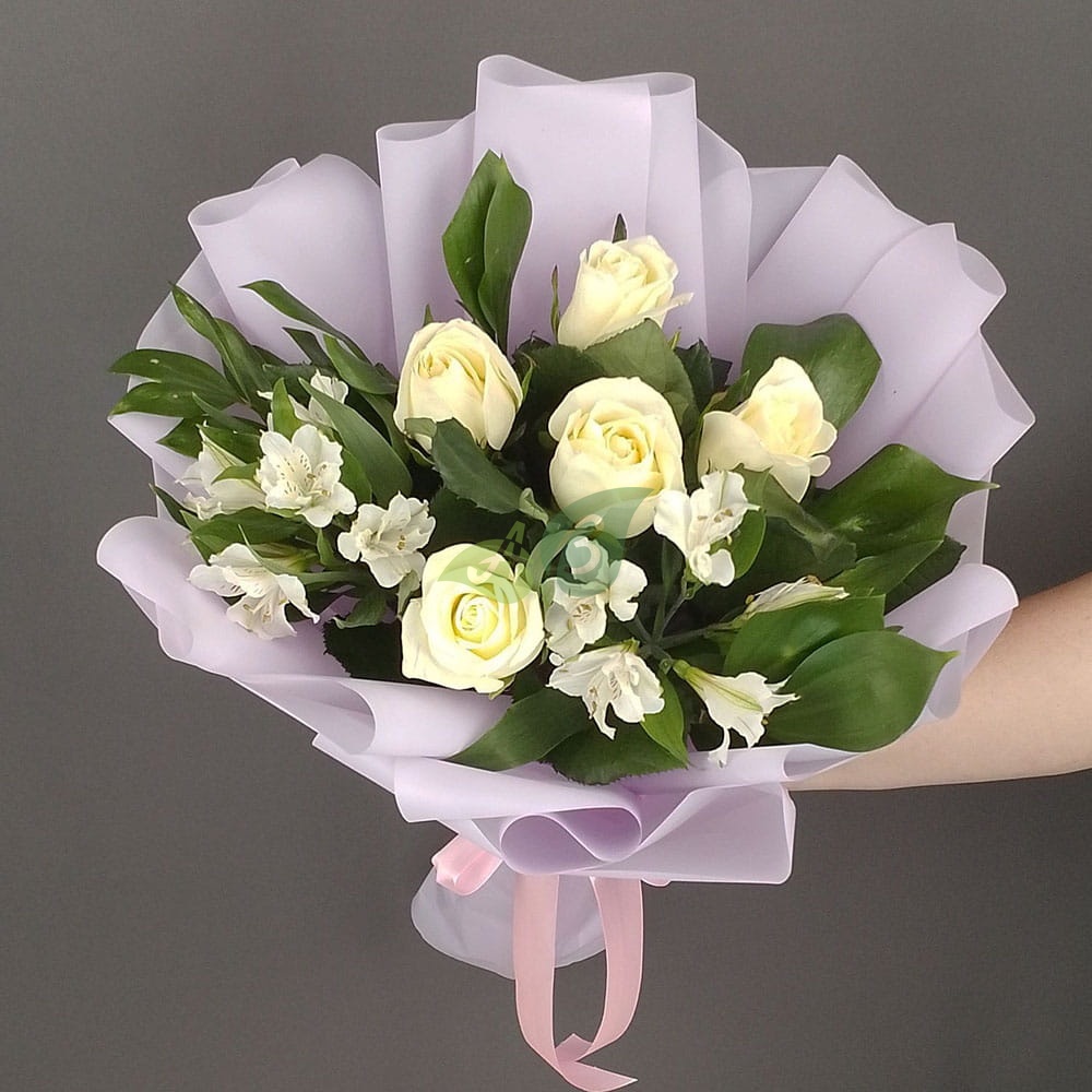 Состав и характеристики букета из альстромрий и роз"Свежесть":